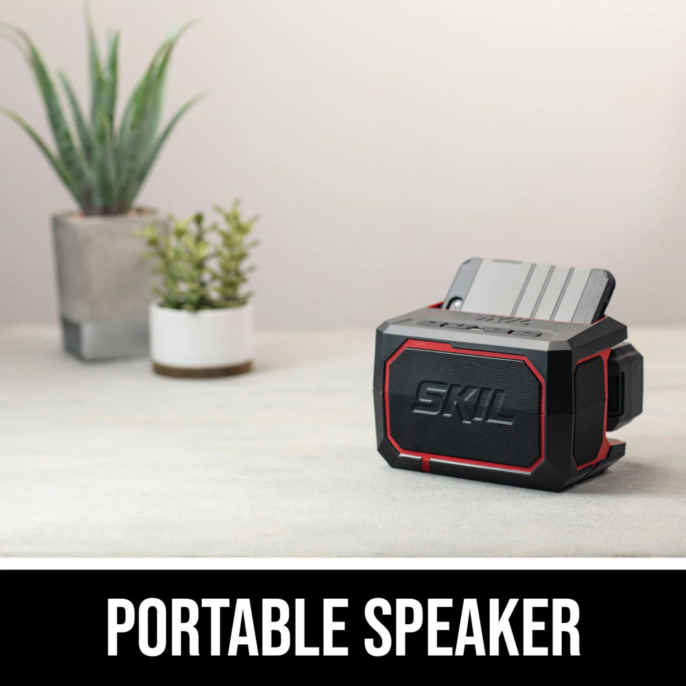 Whether you're working in the garage or heading on the road, the SKIL PWRCORE 12™ 12V Bluetooth Speaker delivers premium sound wherever you go. Get improved bass sound with dual passive radiators, connect with convenience using multiple inputs, and enjoy a portable speaker powered by the same innovative PWRCORE 12™ lithium battery technology as your tools, with longer run time and battery life.